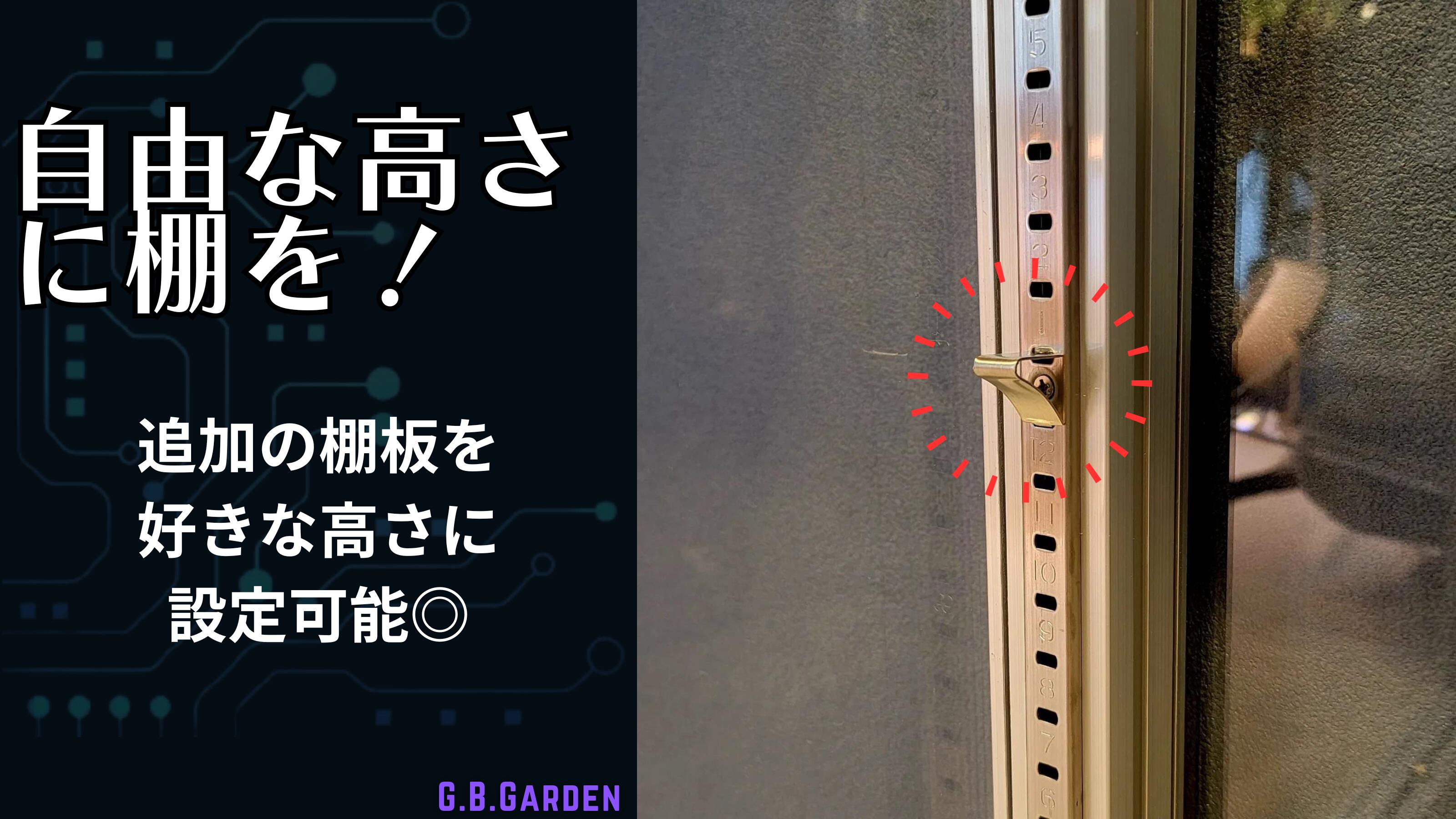 標準仕様で棚板を好きな高さで設置できるようにしています。